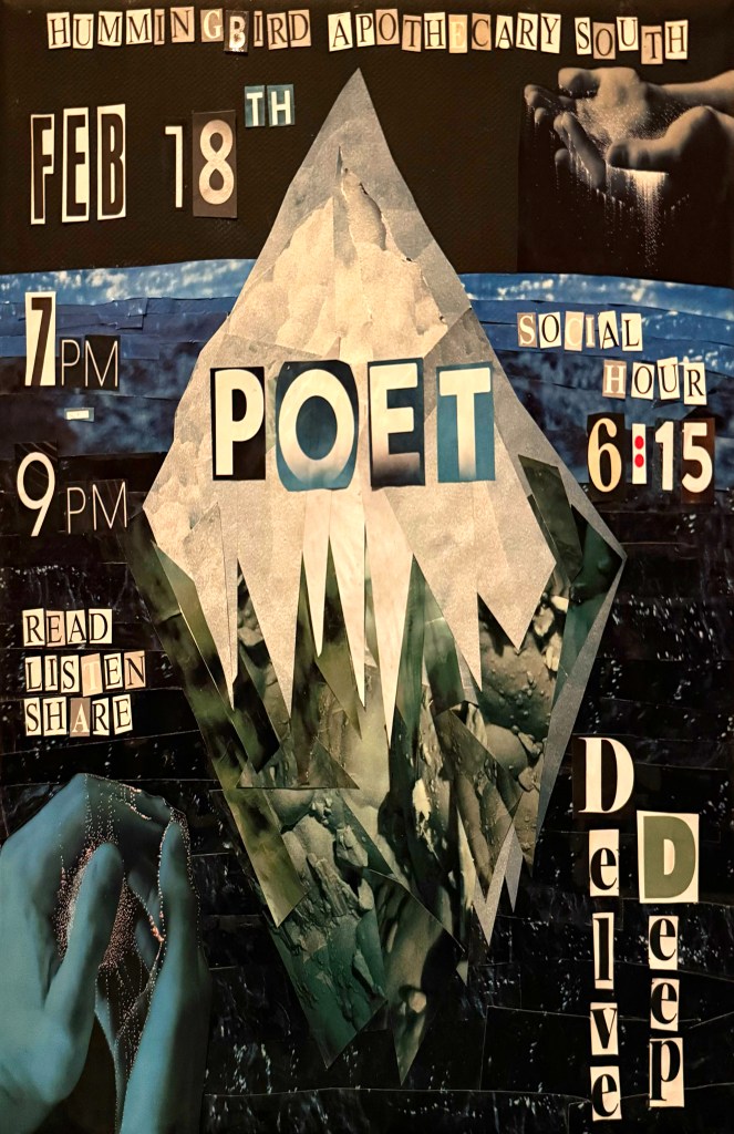 For eight months myself and three other local Knoxville artists (Bean Gast, John Moses, Tolo Quiggle) have been creating, organizing, and managing two community events in Knoxville, TN. One, our now very well attended POET, which occurs the third Wednesday every month, at Hummingbird Apothecary’s south location. The other, a monthly poetry workshop where we explore different themes, write together, and share.